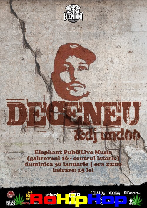 Moment aşteptat de către un număr mare de persoane – concertul susţinut de către Deceneu. Evenimentul are loc pe 30 ianuarie în clubul bucureştean Elephant Pub & Live Music (gabroveni 16 – centrul istoric), începând cu ora 22:00, pentru participarea la eveniment fiind nevoie de 15 RON. DJ Undoo îl va însoţi pe Deceneu, de la platane, pe tot parcursul serii. Un eveniment care nu trebuie ratat de către fanii genului. Distracţie plăcută.