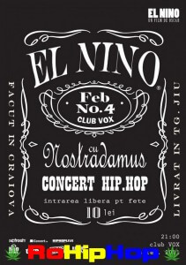 Pe 4 februarie, El Nino va susţine un concert în Club Vox, Târgu Jiu. Evenimentul începe de la ora 21:00, costul unui bilet este de 10 lei, iar pentru fete este gratis. Ne vedem acolo!