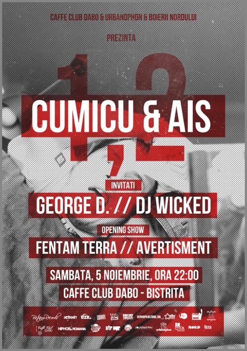 Cumicu alături de Ais, George D., DJ Wicked, Fentam Terra şi Avertisment. Evenimentul are loc pe data de 5 noiembrie(sâmbătă), în Caffe Club Dabo din Bistriţa!