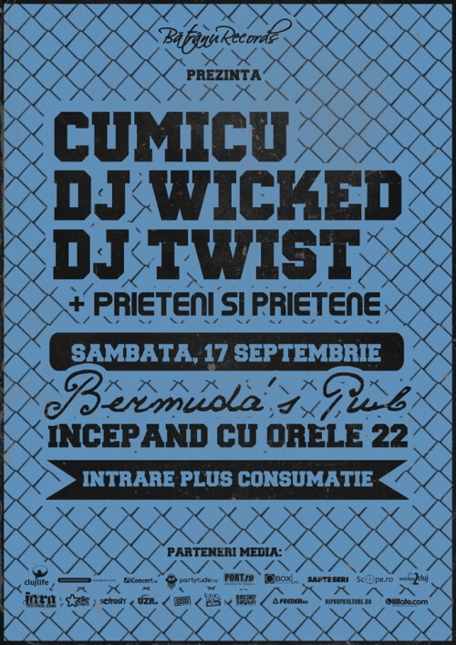 Cumicu alături de DJ Twist şi DJ Wicked vor concerta în Bermuda’s Pub din Cluj-Napoca pe data de 17 septembrie(sâmbătă), de la ora 22:00.