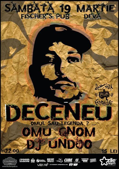 Pe 19 martie (sâmbătă) , în Fischer’s Pub (Deva) , Deceneu va susţine un concert alături de Gnom şi Dj Undoo. Biletul costă 15 lei , iar intrarea se face după ora 22:00. Ne vedem acolo!