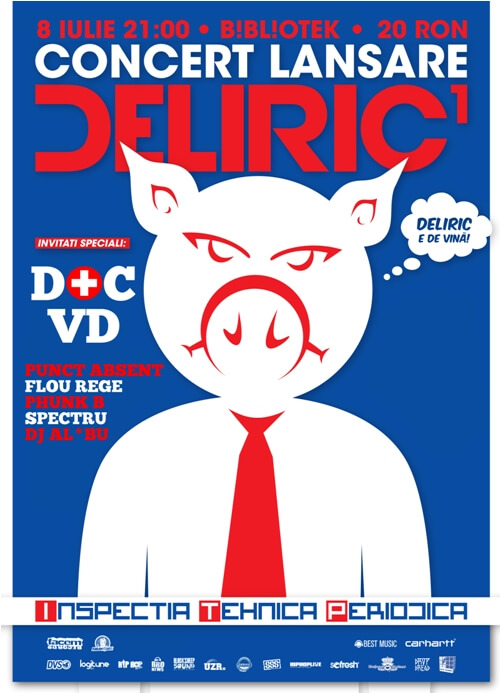 Deliric1 va susţine un concert de lansare al materialului „Inspecţia Tehnică Periodică” în B!B!OTEK din Constanţa. Deliric nu vine singur! Acesta va fi însoţit de DOC, VD, Punct Absent, Flou Rege, Phunk B, Spectru şi Dj Al * Bu. Evenimentul are loc pe data de 8 iulie (vineri), de la ora 21:00, iar preţul unui bilet este de 20 lei.