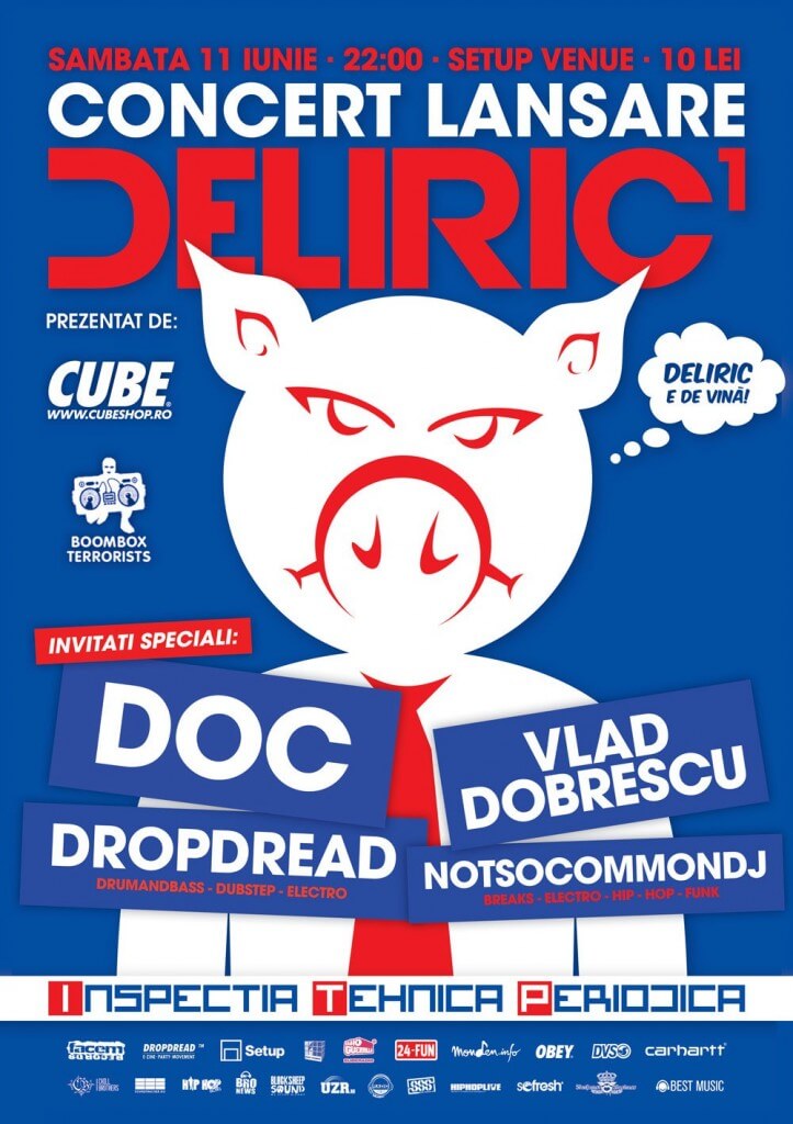 CUBE & BOOMBOX TERRORISTS prezintă pe data de 11 iunie(sâmbătă), concertul de lansare al noului album “Inspecţia Tehnică Periodică” a lui Deliric1. Evenimentul are loc în Setup Venue din Timişoara, intrarea se face după ora 22:00, iar preţul unui bilet este de 10 lei. Ca invitaţi speciali îi avem pe: DOC, Vlad Dobrescu + DJs (DROPDREAD, NOTSOCOMMONDJ).