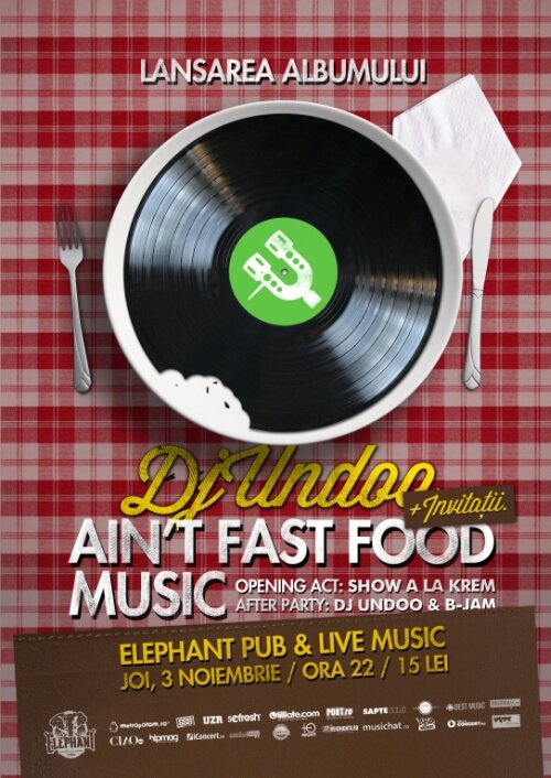 Dj Undoo îşi va lansa materialul „Ain’t fast food music” în Elephant Pub & Live Music pe data de 3 noiembrie (joi)! Totul începe de la ora 22:00, intrarea fiind de 15 lei.