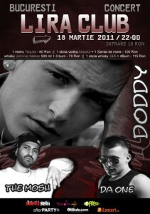 Pe 18 martie (vineri) , în Lira Club (Bucureşti) vor concerta Doddy, The Mosh & Da One . Intrarea este dupa 22:00, biletul 10 lei. Vă aşteptăm!