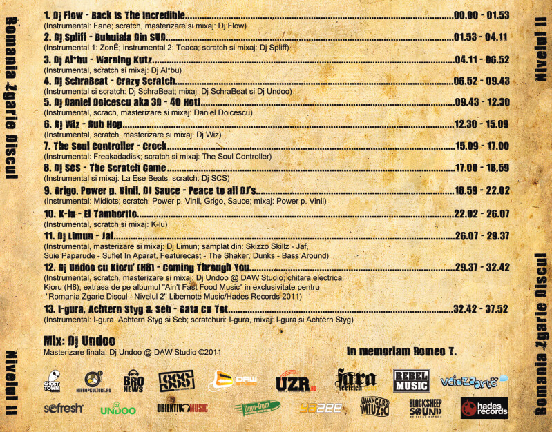 (Instrumental si scratch: Dj SchraBeat; mixaj: Dj SchraBeat si Dj Undoo)