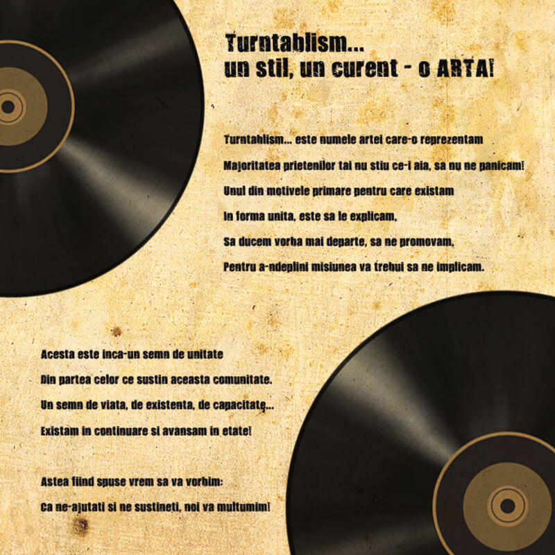 Dupa vorba „unde-s multi puterea creste” ajungem la concluzia ca turntablism-ul in Romania are, in sfarsit, putere. Si prin puterea investita de turntablism in noi va prezentam: Romania Zgarie Discul – Nivelul 2 (Mixed by DJ Undoo)!