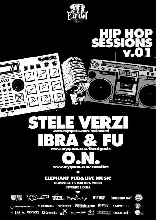 Pe data de 15 mai (duminică), va avea loc prima ediţie a evenimentului „Hip-Hop Sessions”. Îi vm putea asculta pe cer de la SteleVerzi, Ibra & Fu şi O.N. Evenimentul are lov în Elephant Pub din Bucureşti, după ora 20:00, iar intrarea este liberă!