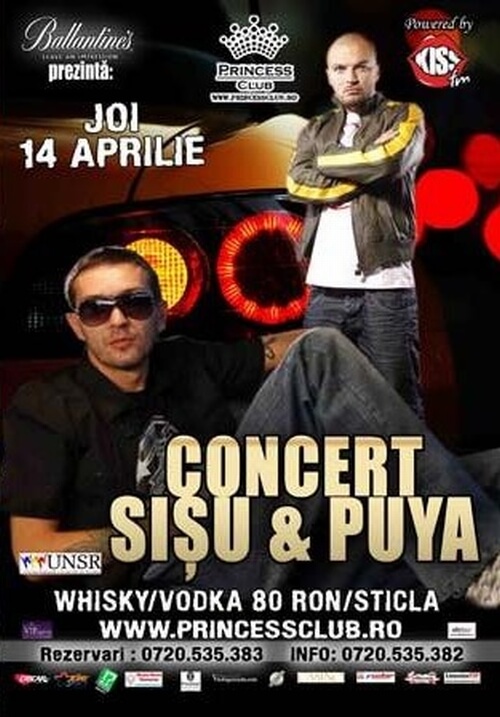 Puya şi Sişu (La Familia) vor susţine un concert în Princess Club (Bucureşti). Evenimentul va avea loc pe data de 14 aprilie (joi), de la ora 21:00.
