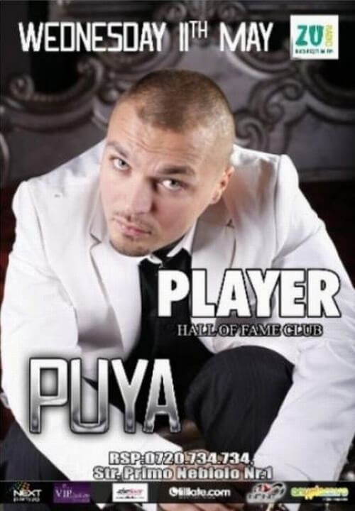 Puya va susţine un concert pe data de 11 mai (miercuri), în Player Hall Of Fame Club din Bucureşti. Evenimentul începe de la ora 22:00, iar pentru rezervări sunaţi la 0720.734.734.