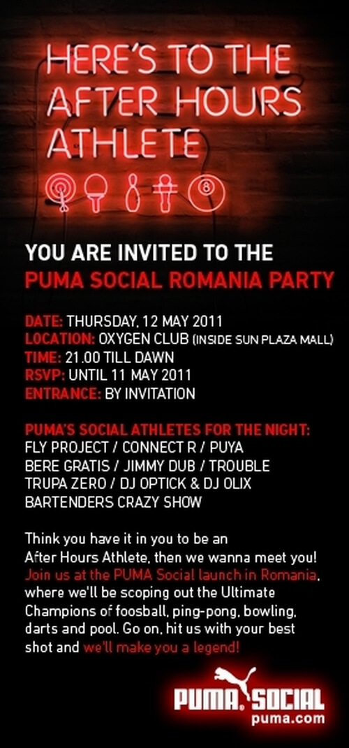 În seara asta, 12 mai (joi), îl vom putea asculta pe Puya la evenimentul intitulat „Puma Here’s To The After Hours Athlete”. Totul se va petrece în Oxygen Club din Bucureşti, de la ora 21:00, iar accesul se face pe bază de invitaţie.