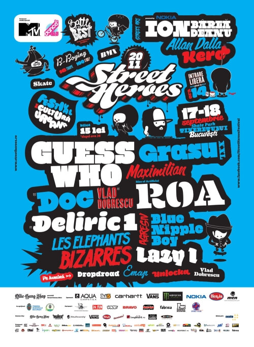 Si stai ca mai avem! Pe langa acest menu bogat in vitamine destinate psihicului urbanoid, Street Heroes ti-a pregatit HEROES CITY – un orasel pe strazile caruia vei gasi esenta culturii urbane: de la produse hand-made pana la body art, de la mijloace de locomotie mai mult sau mai putin conventionale si pana la activitati alternative, muzica, mancare si bautura.